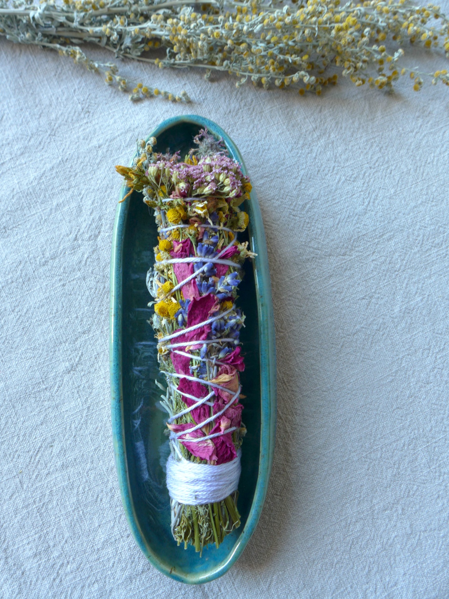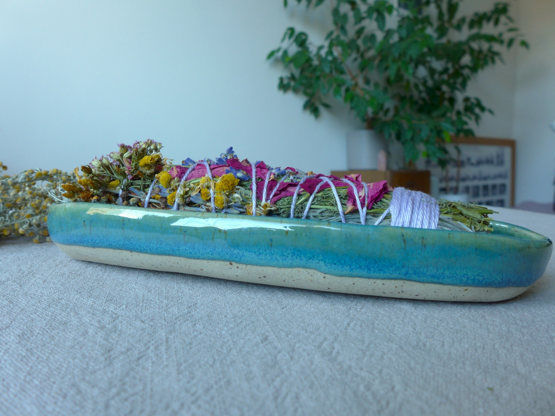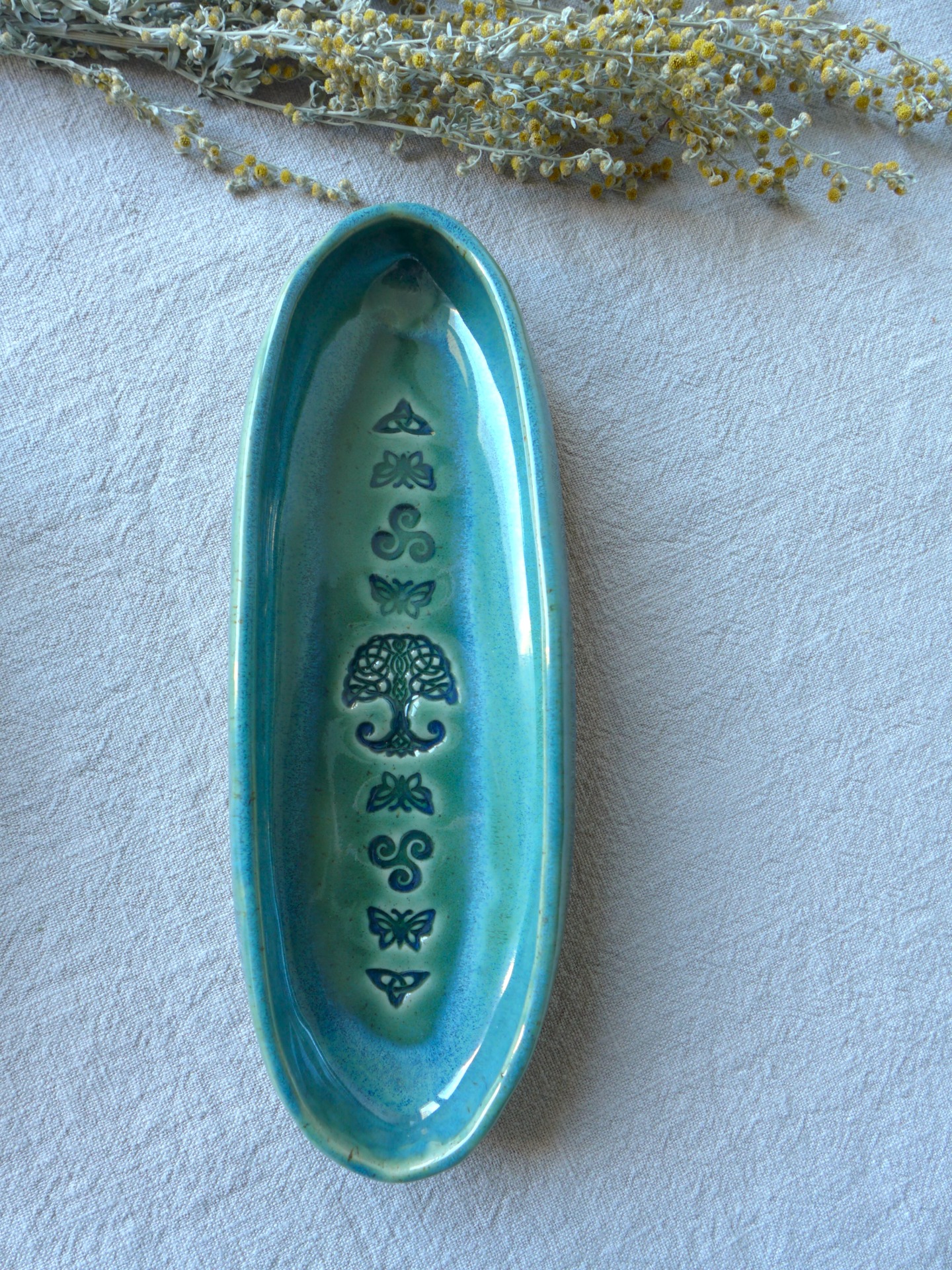 Keramická mistička s ornamenty, která je domovem pro bylinkové svazky. Vejdou se do ní všechny osobní bylinkové svazky, které můžete na e-shopu vidět a nakoupit. Nádherný doplněk pro vaše rituály :)
